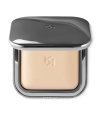 La poudre se présente dans un écrin moderne gris acier, portant le logo KK gravé sur le couvercle.