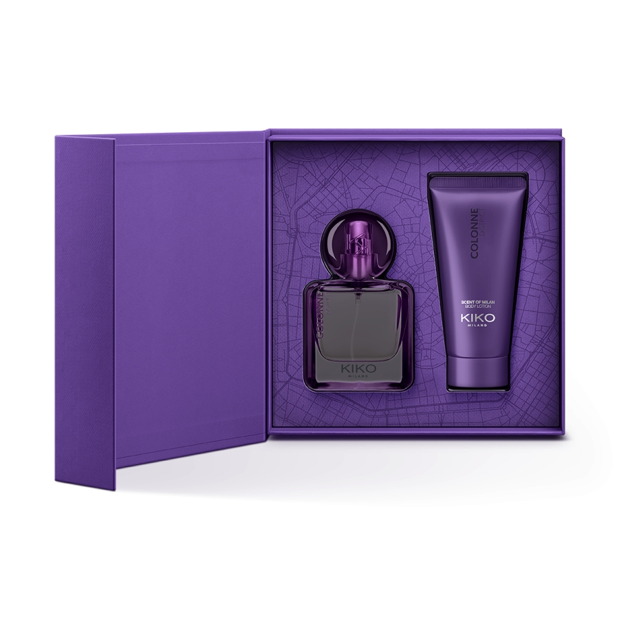 Le coffret cadeau KIKO Milano contient?: -Une eau de parfum au format classique -Une crème parfumée et hydratante* pour le corps au fini satiné de 50?ml Découvrez les 4 variantes et laissez-vous transporter par leurs notes?: 01 Duomo District Ambré, gourmand et fruité Des notes fraîches de citron et d'orange ouvrent la fragrance, suivies d'un cur gourmand de rose blanche et de touches marines, sur un fond chaud et enveloppant de patchouli.